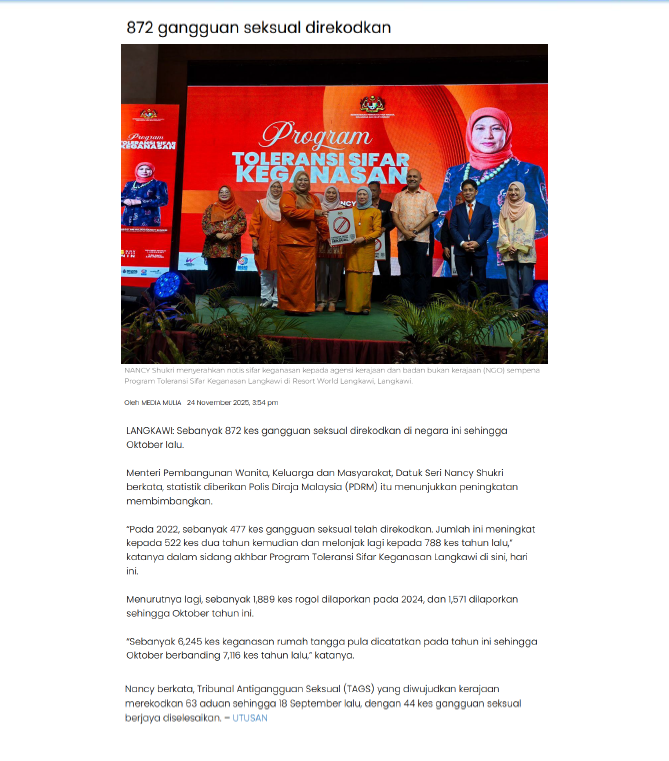 1,300 Kes Seksual Dewasa Direkodkan Jan-April 2025