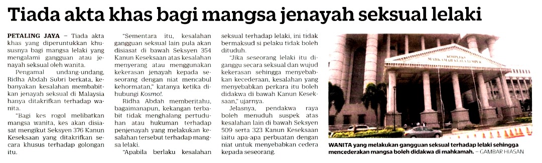 Tiada Akta Khas Bagi Mangsa Jenayah Seksual Lelaki